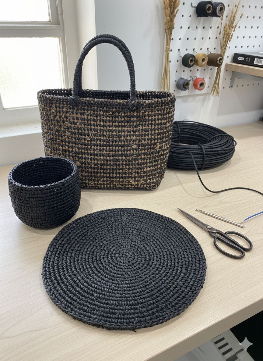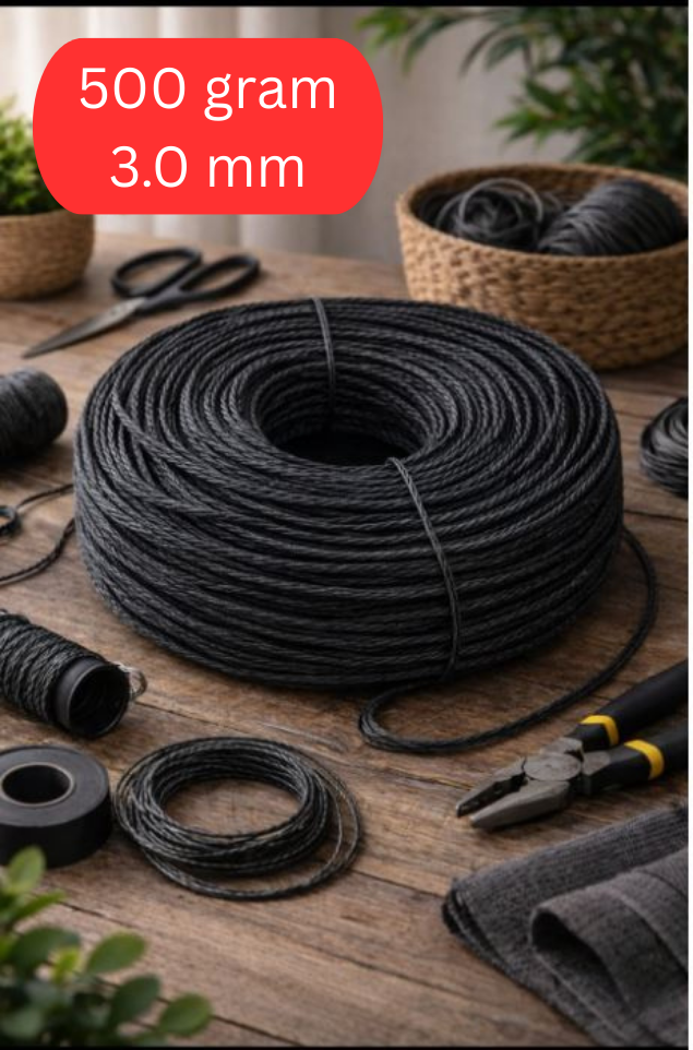 Kraft İp, 500 gram 3.0mm, Doğal Bükümlü Rafya İp, Çanta Sepet Uyumlu, Naturel, Çanta Yapım İpi, Siyah